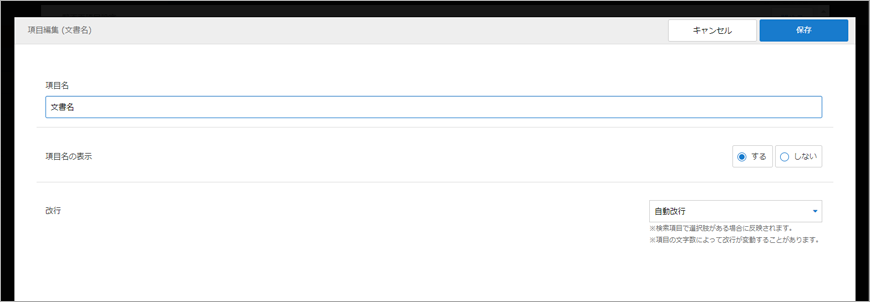 ・項目名の表示:表示を する / しない を選択することができます。一覧画面、詳細画面それぞれで設定することが可能です。