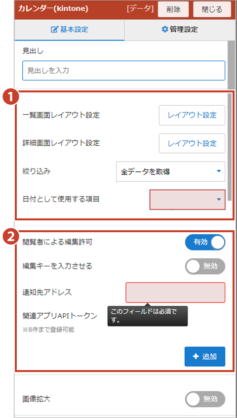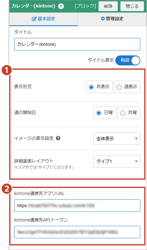カレンダー表示(kintone連携ブロック)