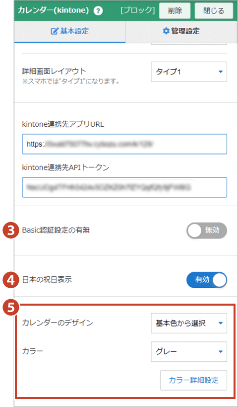 ⑤カレンダーデザイン設定