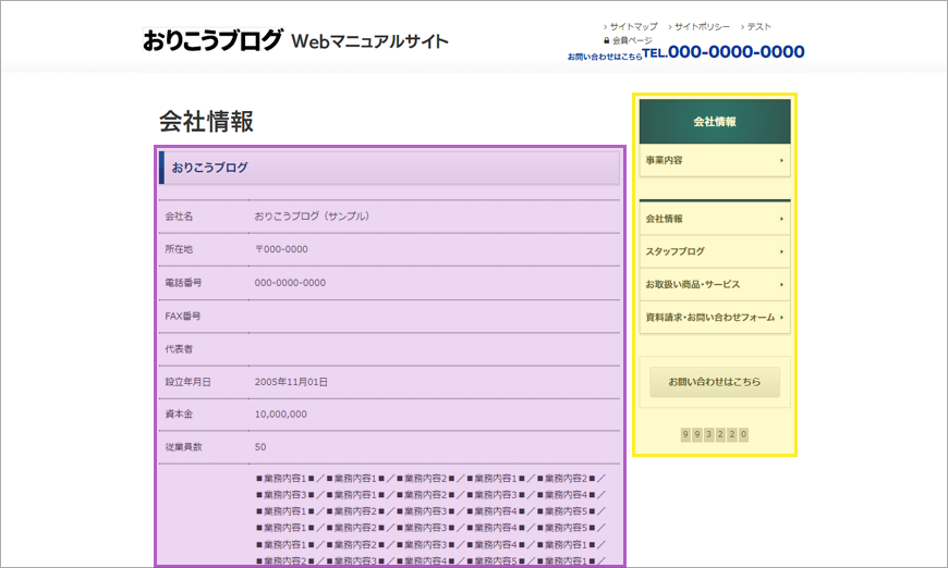 通常2、3カラムで表示されるページを、特定のページだけ1カラム(サイドなし)に変更できます。